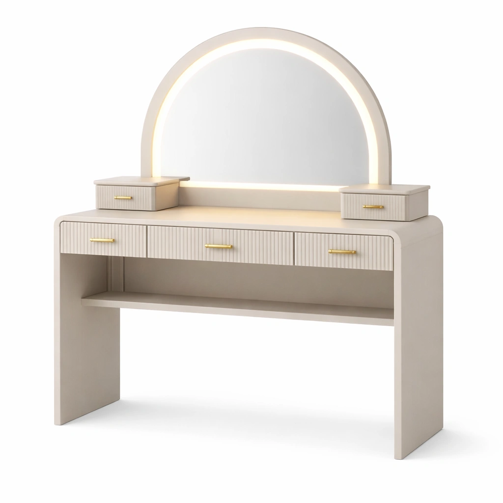 Coiffeuse en bois avec miroir éclairé et 7 tiroirs