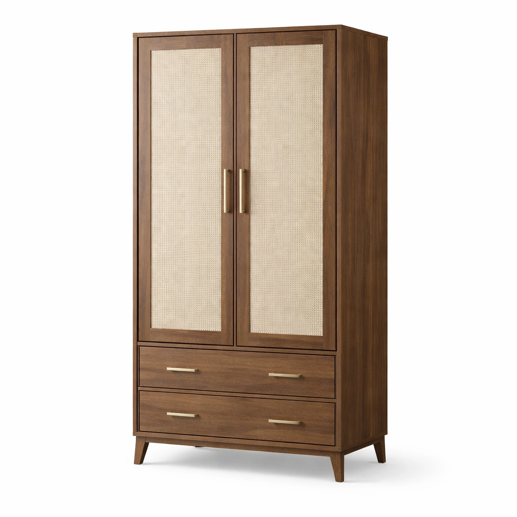 Conception : Portes battantes, poignées en métal, 2 tiroirs